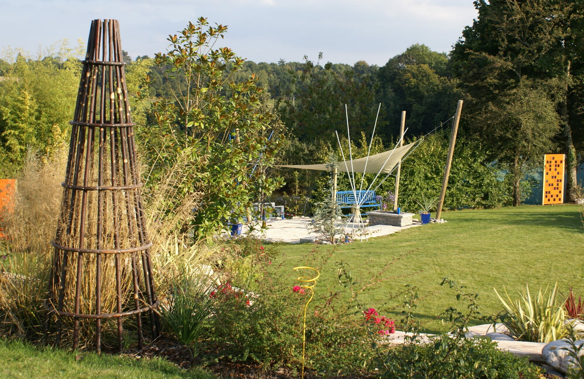 La structuration de la terrasse passe par le travail des volumes et des matières.